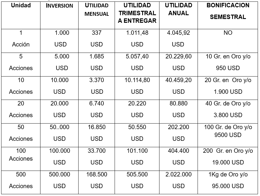 La Acción como Asociados, tendrá derecho a una utilidad del 5 % en la duración del contrato de 3 años calendario